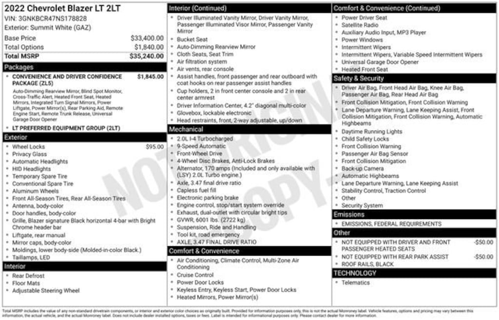 Local Trade, Non Smoker, 172 point inspection certified, 1st oil change free with purchase, 2 Key Fobs, 170 Amp Alternator, 3.47 Final Drive Axle Ratio, 4-Wheel Disc Brakes, 6 Speakers, 6-Speaker Audio System Feature, ABS brakes, Air Conditioning, Alloy wheels, AM/FM radio: SiriusXM, Apple CarPlay/Android Auto, Auto High-beam Headlights, Automatic temperature control, Black Roof Rails, Brake assist, Bright Wheel Locks (LPO), Bumpers: body-color, Child-Seat-Sensing Airbag, Compass, Convenience & Driver Confidence Package, Delay-off headlights, Driver door bin, Driver vanity mirror, Dual front impact airbags, Dual front side impact airbags, Electronic Stability Control, Emergency communication system: OnStar and Chevrolet connected services capable, Exterior Parking Camera Rear, Four wheel independent suspension, Front anti-roll bar, Front Bucket Seats, Front Center Armrest, Front dual zone A/C, Front reading lights, Fully automatic headlights, Heated door mirrors, Heated Driver & Front Passenger Seats, High-Intensity Discharge Headlights, Illuminated entry, Inside Rear-View Auto-Dimming Mirror, Knee airbag, Lane Change Alert w/Side Blind Zone Alert, Leather Shift Knob, Low tire pressure warning, Not Equipped w/Driver & Fr Passenger Heated Seats, Not Equipped w/Rear Park Assist, Occupant sensing airbag, Outside Heated Power-Adjustable Body-Color Mirrors, Outside temperature display, Overhead airbag, Overhead console, Panic alarm, Passenger door bin, Passenger vanity mirror, Power door mirrors, Power driver seat, Power steering, Power windows, Preferred Equipment Group 2LT, Premium Cloth Seat Trim, Radio data system, Radio: Chevrolet Infotainment 3 System, Rear anti-roll bar, Rear Cross Traffic Alert, Rear Park Assist w/Audible Warning, Rear Power Programmable Liftgate, Rear reading lights, Rear seat center armrest, Rear window defroster, Rear window wiper, Remote keyless entry, Remote Start, Ride & Handling Suspension, Security system, SiriusXM Radio, Speed control, Speed-sensing steering, Split folding rear seat, Spoiler, Steering wheel mounted audio controls, Tachometer, Telescoping steering wheel, Tilt steering wheel, Traction control, Trip computer, Universal Home Remote, Variably intermittent wipers, Voltmeter, Wheels: 18 Bright Silver Aluminum, 170 Amp Alternator, 3.47 Final Drive Axle Ratio, 4-Wheel Disc Brakes, 6 Speakers, 6-Speaker Audio System Feature, ABS brakes, Air Conditioning, Alloy wheels, AM/FM radio: SiriusXM, Apple CarPlay/Android Auto, Auto High-beam Headlights, Automatic temperature control, Black Roof Rails, Brake assist, Bright Wheel Locks (LPO), Bumpers: body-color, Child-Seat-Sensing Airbag, Compass, Convenience & Driver Confidence Package, Delay-off headlights, Driver door bin, Driver vanity mirror, Dual front impact airbags, Dual front side impact airbags, Electronic Stability Control, Emergency communication system: OnStar and Chevrolet connected services capable, Exterior Parking Camera Rear, Four wheel independent suspension, Front anti-roll bar, Front Bucket Seats, Front Center Armrest, Front dual zone A/C, Front reading lights, Fully automatic headlights, Heated door mirrors, Heated Driver & Front Passenger Seats, High-Intensity Discharge Headlights, Illuminated entry, Inside Rear-View Auto-Dimming Mirror, Knee airbag, Lane Change Alert w/Side Blind Zone Alert, Leather Shift Knob, Low tire pressure warning, Not Equipped w/Driver & Fr Passenger Heated Seats, Not Equipped w/Rear Park Assist, Occupant sensing airbag, Outside Heated Power-Adjustable Body-Color Mirrors, Outside temperature display, Overhead airbag, Overhead console, Panic alarm, Passenger door bin, Passenger vanity mirror, Power door mirrors, P