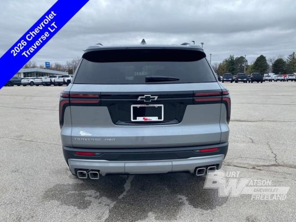 Factory MSRP: $46,865 $3,564 off MSRP!*** WE DELIVER ***Sterling Gray Metallic 2026 Chevrolet Traverse LT 2LT 4D Sport Utility AWD 2.5L DOHC 8-Speed Automatic1st and 2nd Row All-Weather Floor Liners, 3rd Row All-Weather Floor Liner, 3rd row seats: split-bench, 4-Wheel Disc Brakes, 6-Speaker Audio System Feature, 8-Way Power Driver Seat Adjuster, ABS brakes, Air Conditioning, AM/FM radio: SiriusXM with 360L, Apple CarPlay/Android Auto, Auto High-beam Headlights, Automatic temperature control, Black Bowtie, Brake assist, Bright Wheel Locks, Child-Seat-Sensing Airbag, Compass, Driver Confidence Package, Dual front impact airbags, Dual front side impact airbags, Electronic Stability Control, Emergency communication system: OnStar, Floor Liner Package, Front dual zone A/C, Fully automatic headlights, HD Surround Vision, Heated Driver and Front Passenger Seats, Heated steering wheel, Illuminated entry, Integrated Cargo Liner, Key Card, Low tire pressure warning, Occupant sensing airbag, Outside temperature display, Overhead airbag, Power door mirrors, Power Liftgate, Power Outlet, Preferred Equipment Group 2LT, Radio data system, Radio: : Audio System w/17.7 Diagonal Display, Rear air conditioning, Rear Camera Mirror, Rear Pedestrian Alert, Rear window defroster, Rear window wiper, Remote keyless entry, Security system, SiriusXM with 360L Trial Subscription, Speed control, Steering wheel mounted audio controls, Telescoping steering wheel, Tilt steering wheel, Traction control, Traffic Sign Recognition, Variably intermittent wipers, Wheels: 18 Grazen Metallic Machined-Face Aluminum, 4-Way Manual Front Passenger Seat Adjuster, 6 Speakers, Alloy wheels, Bumpers: body-color, Delay-off headlights, Driver door bin, Driver vanity mirror, Four wheel independent suspension, Front anti-roll bar, Front Bucket Seats, Front Center Armrest, Front reading lights, Heated door mirrors, Heated front seats, Navigation System, Overhead console, Panic alarm, Passenger door bin, Passenger vanity mirror, Power driver seat, Power steering, Power windows, Premium Cloth Seat Trim, Rear anti-roll bar, Rear reading lights, Speed-sensing steering, Spoiler, Tachometer, Trip computer, Turn signal indicator mirrors, Voltmeter, 1st and 2nd Row All-Weather Floor Liners, 3rd Row All-Weather Floor Liner, 3rd row seats: split-bench, 4-Wheel Disc Brakes, 6-Speaker Audio System Feature, 8-Way Power Driver Seat Adjuster, ABS brakes, Air Conditioning, AM/FM radio: SiriusXM with 360L, Apple CarPlay/Android Auto, Auto High-beam Headlights, Automatic temperature control, Black Bowtie, Brake assist, Bright Wheel Locks, Child-Seat-Sensing Airbag, Compass, Driver Confidence Package, Dual front impact airbags, Dual front side impact airbags, Electronic Stability Control, Emergency communication system: OnStar, Floor Liner Package, Front dual zone A/C, Fully automatic headlights, HD Surround Vision, Heated Driver and Front Passenger Seats, Heated steering wheel, Illuminated entry, Integrated Cargo Liner, Key Card, Low tire pressure warning, Occupant sensing airbag, Outside temperature display, Overhead airbag, Power door mirrors, Power Liftgate, Power Outlet, Preferred Equipment Group 2LT, Radio data system, Radio: : Audio System w/17.7 Diagonal Display, Rear air conditioning, Rear Camera Mirror, Rear Pedestrian Alert, Rear window defroster, Rear window wiper, Remote keyless entry, Security system, SiriusXM with 360L Trial Subscription, Speed control, Steering wheel mounted audio controls, Telescoping steering wheel, Tilt steering wheel, Traction control, Traffic Sign Recognition, Variably intermittent wipers, Wheels: 18 Grazen Metallic Machined-Face Aluminum.