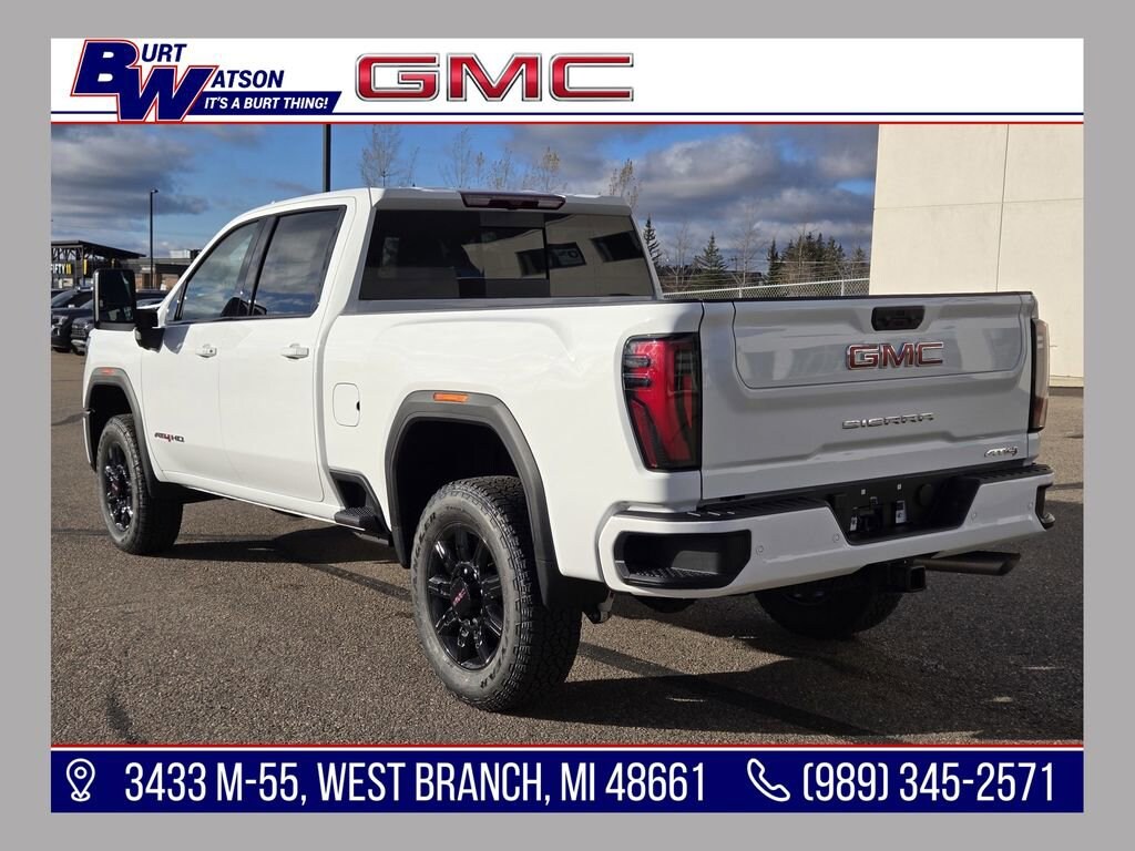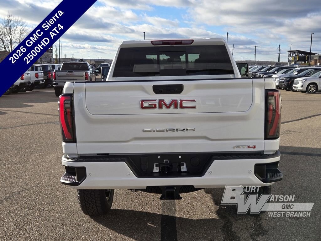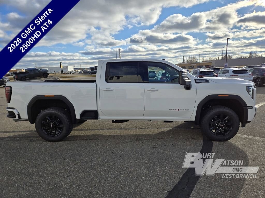 Recent Arrival!Summit White 2026 GMC Sierra 2500HD AT4 6.6L V8 10-Speed Automatic 4D Crew Cab 4WDPlease contact us at 989-345-2571 for more information.125 point inspection, 10-Way Power Driver Seat Adjuster w/Lumbar, 10-Way Power Passenger Seat Adjuster w/Lumbar, 120-Volt Bed Mounted Power Outlet, 120-Volt Instrument Panel Power Outlet, 1st & 2nd Rows All-Weather Floor Liners (LPO), 2 Charge-Only Rear USB Ports, 2 Charge/Data USB Ports Inside Center Console, 2 USB Ports, 2-Speed Active Transfer Case, 220-Amp Alternator, 3.73 Rear Axle Ratio, 4-Wheel Disc Brakes, 7 Speakers, ABS brakes, Air Conditioning, Alloy wheels, AM/FM radio: SiriusXM with 360L, Apple CarPlay/Android Auto, AT4 Preferred Package, Auto High-beam Headlights, Auto-dimming door mirrors, Auto-dimming Rear-View mirror, Automatic Emergency Braking, Automatic temperature control, Bed View Camera w/2 Trailer Camera Provisions, Black Badging Package (LPO), Black GMC Emblems (LPO), Black Sierra Nameplates (LPO), Bose Premium 7-Speaker Sound System, Brake assist, Buckle to Drive, Bumpers: body-color, Compass, Deep-Tinted Glass, Delay-off headlights, Driver door bin, Driver Memory, Driver vanity mirror, Dual front impact airbags, Dual front side impact airbags, Electric Rear-Window Defogger, Electronic Stability Control, Emergency communication system: OnStar, Floor-Mounted Center Console, Following Distance Indicator, Forward Collision Alert, Front anti-roll bar, Front Bucket Seats, Front Center Armrest, Front dual zone A/C, Front fog lights, Front Pedestrian Braking, Front Prem Floor Liners w/Removable Carpet Insert, Front Rain-Sensing Wipers, Front reading lights, Front wheel independent suspension, Fully automatic headlights, Gloss Black Header Grille & Grille Insert Bars, Gooseneck/5th Wheel Prep Package, HD Surround Vision, Heated 2nd Row Outboard Seats, Heated door mirrors, Heated Driver & Front Outboard Passenger Seats, Heated front seats, Heated rear seats, Heated steering wheel, Heavy-Duty 80 Amp Battery, Hill Descent Control, Hitch Guidance w/Hitch View, Illuminated entry, In-Vehicle Trailering System App, IntelliBeam Automatic High Beam On/Off, Keyless Open & Start, Lane Departure Warning System, LED Cargo Area Lighting, LED Smoked Amber Roof Marker Lamps, Low tire pressure warning, Manual Tilt-Wheel/Telescoping Steering Column, Memory seat, Occupant sensing airbag, Off-Road Suspension, OnStar Services Capable, Outside temperature display, Overhead airbag, Overhead console, Panic alarm, Passenger door bin, Passenger vanity mirror, Perforated Leather-Appointed Front Seat Trim, Pickup Box, Power door mirrors, Power driver seat, Power Front Passenger Windows w/Express Up/Down, Power passenger seat, Power Sliding Rear Window w/Defogger, Power steering, Power windows, Premium audio system: Premium GMC Infotainment System, Push Button Start, Radio: AM/FM w/Premium GMC Infotainment System, Rain sensing wipers, Rear Cross Traffic Alert, Rear Prem Floor Liners w/Removable Carpet Insert, Rear reading lights, Rear seat center armrest, Rear step bumper, Rear Wheelhouse Liners, Rear window defroster, Remote keyless entry, Remote Vehicle Starter System, Safety Alert Seat, Security system, Set of 4 Wheel Locks (LPO), SiriusXM w/360L Trial Subscription, Snow Plow Prep/Camper Package, Speed control, Speed-sensing steering, Split folding rear seat, Spray-On Pickup Bedliner w/GMC Logo, Steering Wheel Audio Controls, Steering wheel mounted audio controls, Tachometer, Telescoping steering wheel, Tilt steering wheel, Traction control, Trailer Cam Provisions & Trailer Viewing Software, Trailer Side Blind Zone Alert, Trip computer, Turn signal indicator mirrors, Ultrasonic Front & Rear Park Assist, Unauthorized Entry Theft-Deterrent System, Universal Home Remote, Variably intermittent wipers, Ventilated Driver & Front Passenger Seats, Ventilated front seats, Voltmeter, Wheels: 20 High Gloss Black 8 Price includes: $500 - Buick & GMC Consumer Cash Program.
