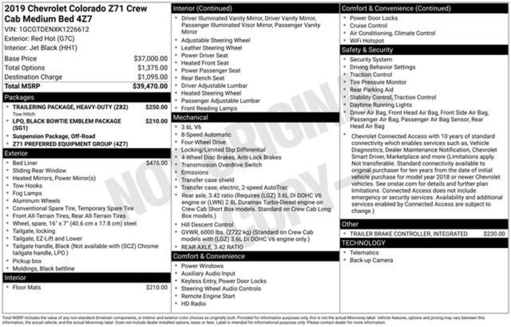 Red Hot 2019 Chevrolet Colorado Z71 4D Crew Cab V6 8-Speed Automatic 4WD