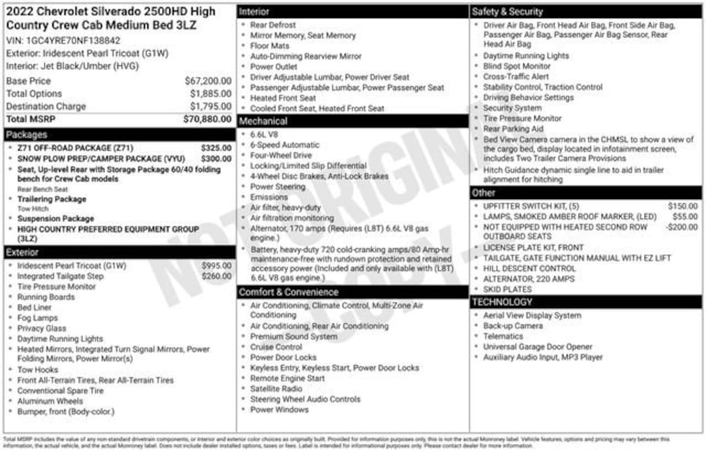 **APPLE CAR PLAY**, **Bluetooth, Hands-Free**, **Leather Seats**, **Heated Seats**, 172 point inspection certified, 1st oil change free with purchase, Cooling Seats, Heated Seats, In-Vehicle Wi-Fi, Remote control start, Stolen vehicle location/ Recovery system, Driver monitoring system, Vehicle Usage Alerts, In-vehicle virtual assistant, Vehicle usage alerts, 10-Way Power Driver Seat Adjuster w/Lumbar, 10-Way Power Passenger Seat Adjuster w/Lumbar, 12-Volt Rear Auxiliary Power Outlet, 120-Volt Bed Mounted Power Outlet, 120-Volt Instrument Panel Power Outlet, 170 Amp Alternator, 220 Amp Alternator, 3.73 Rear Axle Ratio, 4-Wheel Disc Brakes, 6 Rectangular Chromed Tubular Assist Steps, 7 Speakers, 720 Cold-Cranking Amps Heavy-Duty Battery, 8 Driver Information Center, ABS brakes, Advanced Trailering System, Air Conditioning, Alloy wheels, AM/FM radio: SiriusXM with 360L, Auto-dimming door mirrors, Auto-Dimming Inside Rear-View Mirror, Auto-dimming Rear-View mirror, Automatic temperature control, Bed View Camera w/2 Trailer Camera Provisions, Black Chevytec Spray-On Bedliner w/Chevrolet Logo, Bluetooth® For Phone, BOSE Premium 7-Speaker Sound System, Brake assist, Bumpers: body-color, Chevrolet Connected Access Capable, Chrome Front Grille, Chrome Mirror Caps, Color-Keyed Carpeting Floor Covering, Compass, Deep-Tinted Glass, Delay-off headlights, Driver door bin, Driver Memory, Driver vanity mirror, Dual Charge-Only USB Ports (2nd Row), Dual front impact airbags, Dual front side impact airbags, Electric Rear-Window Defogger, Electrical Lock Control Steering Column, Electronic Cruise Control w/Set & Resume Speed, Electronic Stability Control, Exterior Parking Camera Rear, EZ Lift Power Lock & Release Tailgate, Floor-Mounted Center Console, Front anti-roll bar, Front Bucket Seats, Front Carpeted Floor Mats, Front Center Armrest, Front Chrome Recovery Hooks, Front dual zone A/C, Front fog lights, Front LED Fog Lamps, Front License Plate Kit, Front reading lights, Front wheel independent suspension, Fully automatic headlights, Garage door transmitter, HD Surround Vision w/2 Trailer View Camera Provisions, Heated & Auto-Dim Pwr Vertical Trailering Mirrors, Heated door mirrors, Heated Driver & Front Outboard Passenger Seating, Heated front seats, Heated Steering Wheel, Heated steering wheel, Hill Descent Control, Hitch Guidance w/Hitch View, Illuminated entry, Integrated Trailer Brake Controller, Keyless Open & Start, Lane Change Alert w/Side Blind Zone Alert, Leather-Wrapped Steering Wheel, LED Cargo Area Lighting, LED Smoked Amber Roof Marker Lamps, Low tire pressure warning, Manual Tilt & Telescoping Steering Column, Memory seat, Multi-Flex Tailgate, Navigation System, Not Equipped w/Heated 2nd Row Outboard Seats, Occupant sensing airbag, Off-Road Suspension, OnStar & Chevrolet Connected Services Capable, Outside temperature display, Overhead airbag, Overhead console, Panic alarm, Passenger door bin, Passenger vanity mirror, Perforated Leather-Appointed Seat Trim, Polished Exhaust Tip, Power Door Locks, Power door mirrors, Power driver seat, Power Front Windows w/Driver Express Up/Down, Power Front Windows w/Passenger Express Up/Down, Power passenger seat, Power Rear Windows w/Express Down, Power Sliding Rear Window w/Defogger, Power steering, Power windows, Preferred Equipment Group 3LZ, Premium audio system: Chevrolet Infotainment 3 Premium, Radio: Chevrolet Infotainment 3 Premium System, Rear Carpeted Floor Mats, Rear Cross Traffic Alert, Rear reading lights, Rear seat center armrest, Rear step bumper, Rear Wheelhouse Liners, Rear window defroster, Remote keyless entry, Remote Vehicle Starter System, Security system, SiriusXM w/360L, Snow Plow Prep/Camper Package, Speed control, Speed-sensing steering, Split fold