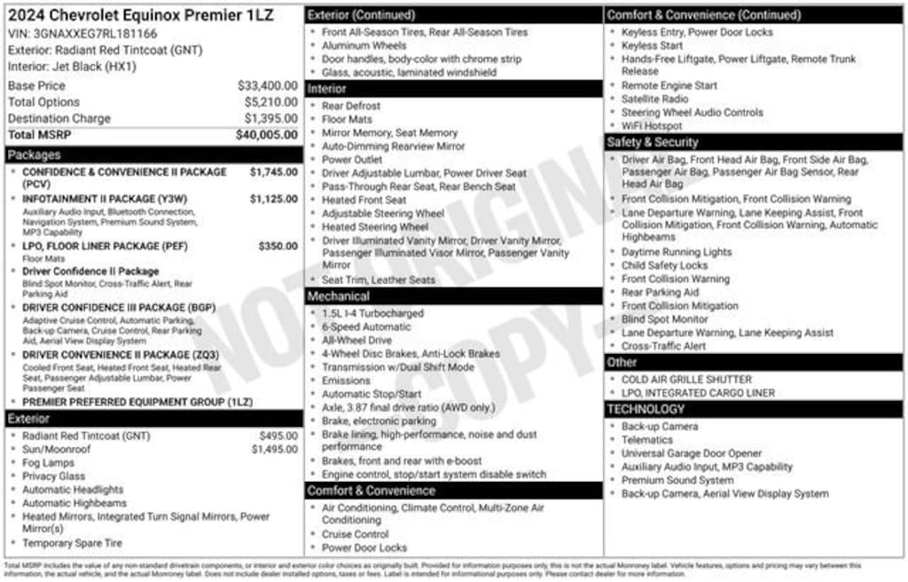 Radiant Red Tintcoat 2024 Chevrolet Equinox Premier 1.5L DOHC 6-Speed Automatic Electronic with Overdrive AWD 4D Sport Utility