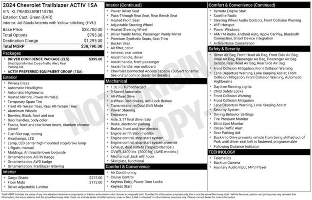 Cacti Green 2024 Chevrolet TrailBlazer ACTIV 1.3L Ecotec Turbo DOHC SIDI w/VVT 9-Speed Automatic AWD 4D Sport Utility