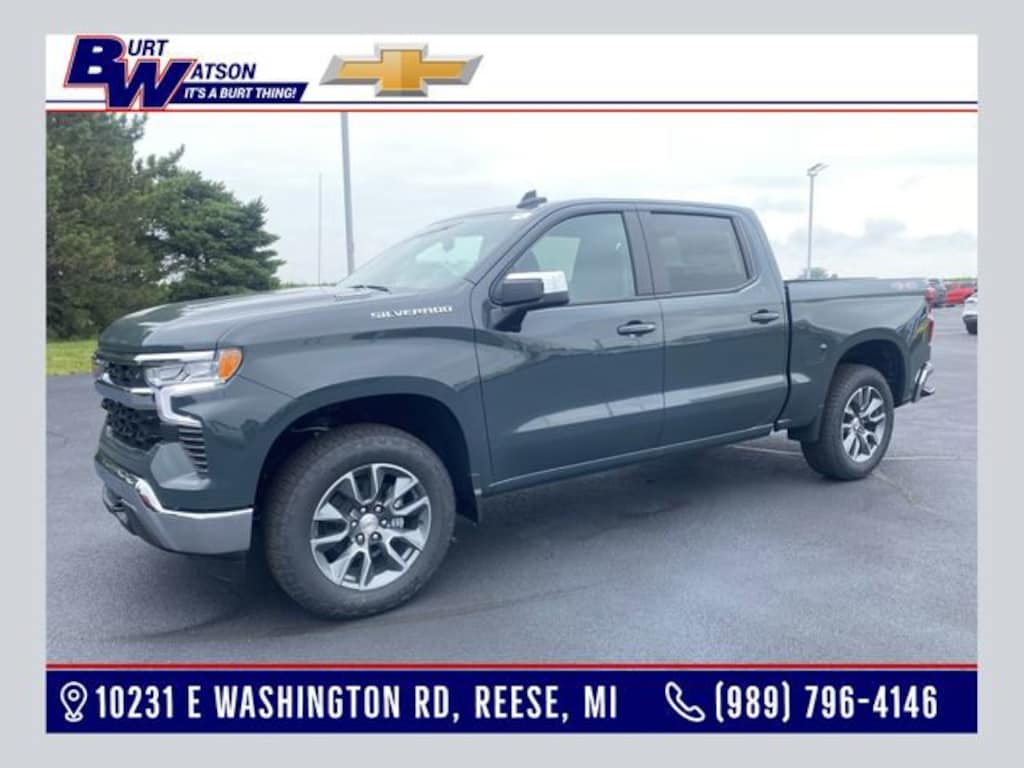 Cypress Gray 2025 Chevrolet Silverado 1500 LT 2.7L I4 Turbocharged DOHC 16V LEV3-SULEV30 310hp 4D Crew Cab 4WD 8-Speed Automatic