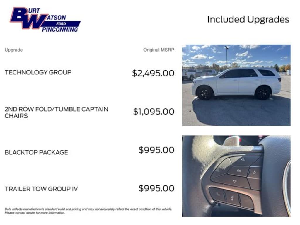 Pre-Owned Vehicle Fees are $1,110* All online prices are excluding service contracts. At Burt Watson we strongly believe in the value of the service contracts that we offer. The price we quote in store will always include a service contract which can be removed upon request.