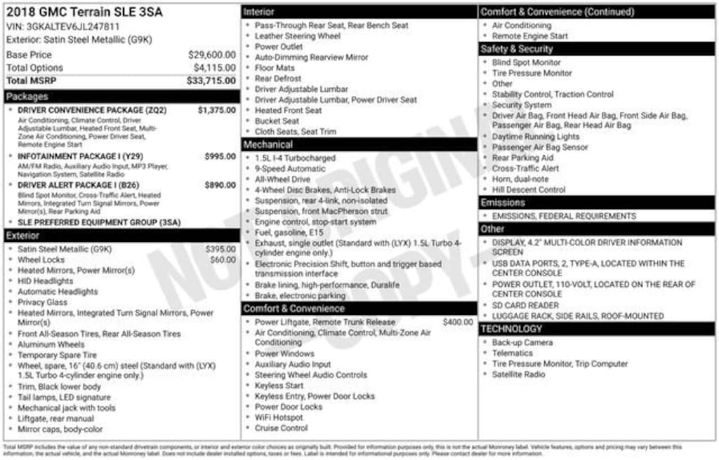 Satin Steel Metallic 2018 GMC Terrain SLE 4D Sport Utility 1.5L DOHC 9-Speed Automatic AWD