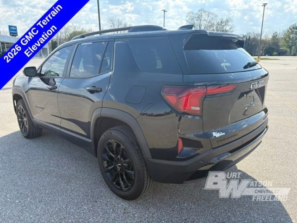 Recent Arrival! CARFAX One-Owner. Clean CARFAX.*** WE DELIVER ***Ebony Twilight Metallic 2026 GMC Terrain Elevation 4D Sport Utility 1.5L DOHC CVT FWD**ONE OWNER**, **Heated Seats**, 110 point inspection certified, 172 point inspection certified, Heated Seats, In-Vehicle Wi-Fi, Remote control start, Stolen vehicle location/ Recovery system, Driver monitoring system, Vehicle Usage Alerts, In-vehicle virtual assistant, Vehicle usage alerts, 4-Wheel Disc Brakes, 5.81 Final Drive Axle Ratio, 6 Speakers, 6-Speaker Audio System Feature, ABS brakes, Air Conditioning, Alloy wheels, AM/FM radio: SiriusXM, Auto High-beam Headlights, Automatic temperature control, Black Edition, Black Exterior Accents and Black Exterior Badging, Black Mirror Caps, Brake assist, Brushed Aluminum Roof Rails, Bumpers: body-color, Compass, Darkened Grille and C Shaped Surrounding Bezel, Delay-off headlights, Driver 6-Way Manual Seat Adjuster, Driver and Front Passenger Heated Seats, Driver door bin, Driver vanity mirror, Dual front impact airbags, Dual front side impact airbags, Electronic Stability Control, Emergency communication system: OnStar and GMC connected services capable, Four wheel independent suspension, Front and Rear Black GMC Emblems, Front anti-roll bar, Front Bucket Seats, Front Center Armrest, Front Passenger 4-Way Manual Seat Adjuster, Front reading lights, Fully automatic headlights, Gloss Black Roof-Mounted Side Rails, Heated door mirrors, Heated front seats, Heated steering wheel, Illuminated entry, Low tire pressure warning, Memory seat, Navigation System, Occupant sensing airbag, Outside temperature display, Overhead airbag, Panic alarm, Passenger door bin, Passenger vanity mirror, Power door mirrors, Power steering, Power windows, Preferred Equipment Group 3SA, Premium Cloth Seat Trim, Radio data system, Radio: Premium GMC Infotainment System, Rear air conditioning, Rear anti-roll bar, Rear seat center armrest, Rear window defroster, Rear window wiper, Remote keyless entry, Security system, SiriusXM with 360L Trial Subscription, Speed control, Speed-sensing steering, Split folding rear seat, Spoiler, Sport steering wheel, Steering wheel mounted audio controls, Tachometer, Telescoping steering wheel, Tilt steering wheel, Traction control, Trip computer, Variably intermittent wipers, Wheels: 17 Grazen Metallic Machined Aluminum, Wheels: 19 Gloss Black Painted Aluminum, Wireless Apple CarPlay/Wireless Android Auto, 4-Wheel Disc Brakes, 5.81 Final Drive Axle Ratio, 6 Speakers, 6-Speaker Audio System Feature, ABS brakes, Air Conditioning, Alloy wheels, AM/FM radio: SiriusXM, Auto High-beam Headlights, Automatic temperature control, Black Edition, Black Exterior Accents and Black Exterior Badging, Black Mirror Caps, Brake assist, Brushed Aluminum Roof Rails, Bumpers: body-color, Compass, Darkened Grille and C Shaped Surrounding Bezel, Delay-off headlights, Driver 6-Way Manual Seat Adjuster, Driver and Front Passenger Heated Seats, Driver door bin, Driver vanity mirror, Dual front impact airbags, Dual front side impact airbags, Electronic Stability Control, Emergency communication system: OnStar and GMC connected services capable, Four wheel independent suspension, Front and Rear Black GMC Emblems, Front anti-roll bar, Front Bucket Seats, Front Center Armrest, Front Passenger 4-Way Manual Seat Adjuster, Front reading lights, Fully automatic headlights, Gloss Black Roof-Mounted Side Rails, Heated door mirrors, Heated front seats, Heated steering wheel, Illuminated entry, Low tire pressure warning, Memory seat, Navigation System, Occupant sensing airbag, Outside temperature display, Overhead airbag, Panic alarm, Passenger door bin, Passenger vanity mirror, Power door mirrors, Power steering, Power windows, Preferred Equipment Group 3SA, Premium Cloth Seat Trim, Radio data system, Radio: Premium GMC Infotainment System, Rear air conditioning, Rear anti-roll bar, Rear seat center armrest, Rear window defroster, Rea