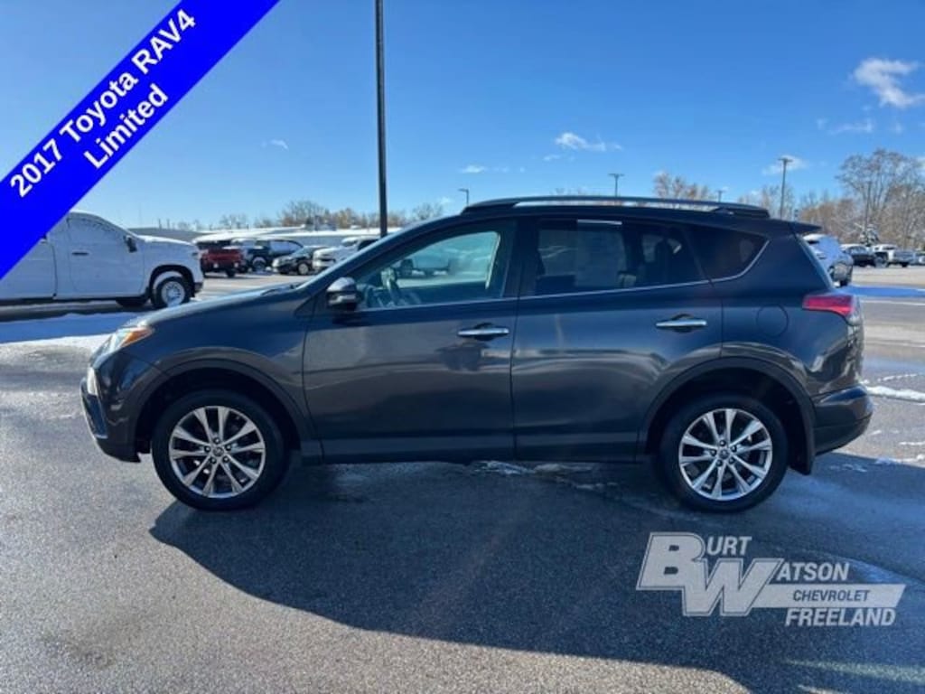 CARFAX One-Owner. Odometer is 70842 miles below market average!*** WE DELIVER ***Black 2017 Toyota RAV4 Limited 4D Sport Utility 2.5L 4-Cylinder DOHC Dual VVT-i 6-Speed Automatic AWD1st oil change free with purchase, 2 Key Fobs, All weather floor matts, Heated Seats, Stolen vehicle location/ Recovery system, Driver monitoring system, Vehicle Usage Alerts, In-vehicle virtual assistant, Vehicle usage alerts, 4-Wheel Disc Brakes, 4.071 Axle Ratio, 6 Speakers, ABS brakes, Air Conditioning, Alloy wheels, AM/FM radio: SiriusXM, Auto High-beam Headlights, Auto-dimming Rear-View mirror, Automatic temperature control, Brake assist, Bumpers: body-color, Chrome wheels, Compass, Driver door bin, Driver vanity mirror, Dual front impact airbags, Dual front side impact airbags, Electronic Stability Control, Exterior Parking Camera Rear, Four wheel independent suspension, Front anti-roll bar, Front Bucket Seats, Front Center Armrest, Front dual zone A/C, Front fog lights, Front reading lights, Fully automatic headlights, Garage door transmitter: HomeLink, Heated door mirrors, Heated front seats, Heated Front Sport Seats, Illuminated entry, Knee airbag, Leather Shift Knob, Leather steering wheel, Low tire pressure warning, Memory seat, Navigation System, Occupant sensing airbag, Outside temperature display, Overhead airbag, Overhead console, Panic alarm, Passenger door bin, Passenger vanity mirror, Power door mirrors, Power driver seat, Power Liftgate, Power moonroof, Power steering, Power windows, Radio data system, Radio: Entune Premium Audio with Navigation, Rear anti-roll bar, Rear seat center armrest, Rear window defroster, Rear window wiper, Remote keyless entry, Roof rack, SofTex Seat Trim, Speed control, Speed-sensing steering, Split folding rear seat, Spoiler, Steering wheel mounted audio controls, Tachometer, Telescoping steering wheel, Tilt steering wheel, Traction control, Trip computer, Turn signal indicator mirrors, Variably intermittent wipers, Wheels: 18 Alloy ALM.
